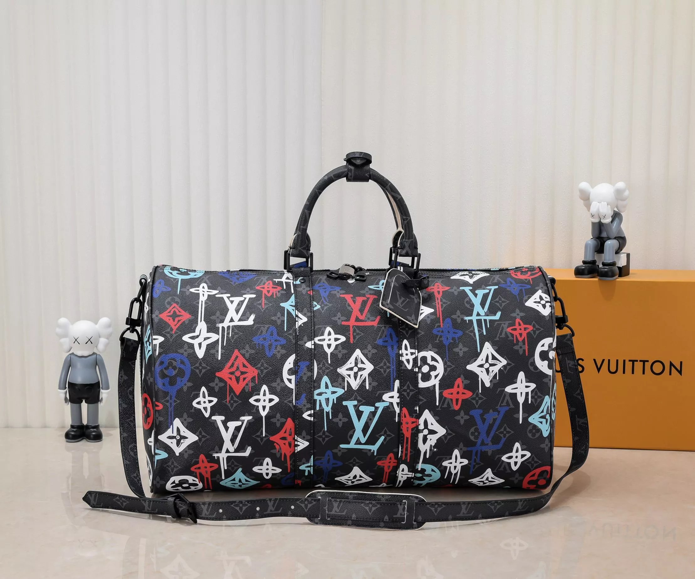 Be the first to review “Louis Vuitton white blue purple flower duffle bag”